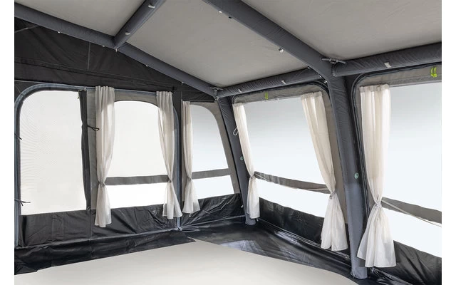 Mit einer großzügig bemessenen Tiefe von 3 m und Fenstern, die sich vom Boden bis zur Decke erstrecken, schafft das Grande Air ein wunderbares Raumgefühl. Wenn Freunde oder Familienmitglieder übernachten möchten, können Sie Ihr Zelt auf einer oder beiden Seiten ganz einfach per Reißverschluss-Anbau erweitern.
