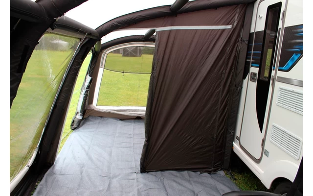 Belüftungspunkte im Dach und in der Haubentür helfen bei der Reduzierung von Kondenswasser durch Optimierung des Luftstroms. Die Rolltüren an der Vorderseite und an den Seiten des Vorzeltes bieten eine großartige Möglichkeit, das Vorzelt bei schönem Wetter als Sonnenschutz zu verwenden.