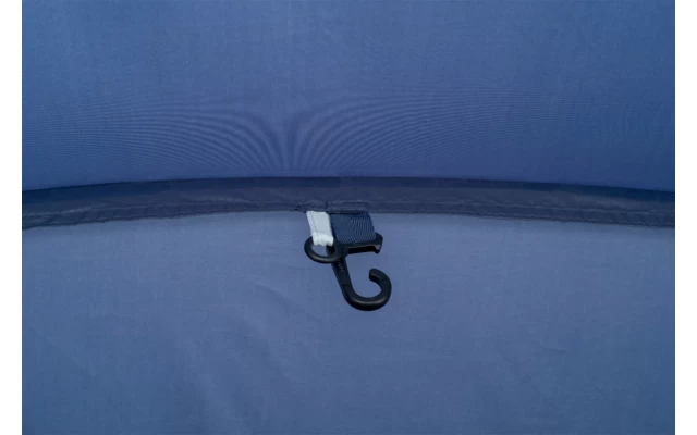 An der Vorderseite der Schlafkabine befinden sich praktische Aufbewahrungsfächer, in denen man z.B. Zeitschriften, Zahnbürsten, Sonnenbrillen und Handys aufbewahren kann. An den beiden Seiten des Zeltes befindet sich jeweils eine Dauerventilation mit Abspannfunktion, damit auch die Schlafbereiche immer mit genügend frischer Luft versorgt sind.