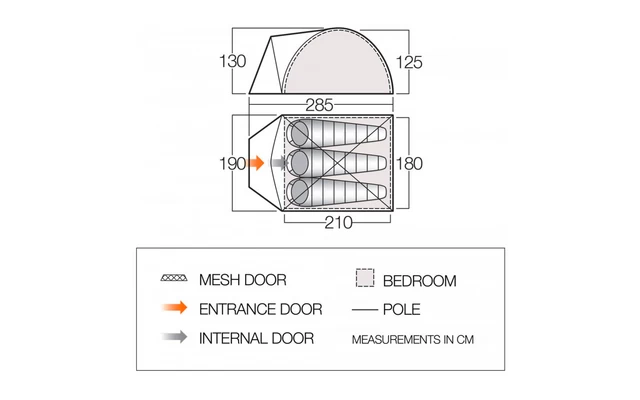 - Linked-In Groundsheet- Entwickelt von Vango, bietet diese Bodenwanne alle Vorteile einer fest eingenähten Bodenwanne. Kann aber, wenn gewünscht, ausgehängt und weggerollt werden und hat zudem den Vorteil einer besseren Ventilation.